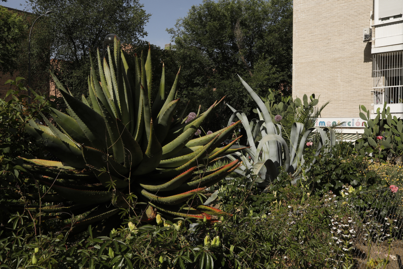 Esa primera vez no conocimos a Victor, vecino y portero del edificio al que pertenece el jardín. Nos quedamos absortos admirando la gran planta de ágave que captaba la mirada del paseante. No hizo falta cocer sus carnosas hojas o las de los demás cáctus esparcidos por el jardín para quedar alucinados por su imponente presencia.
