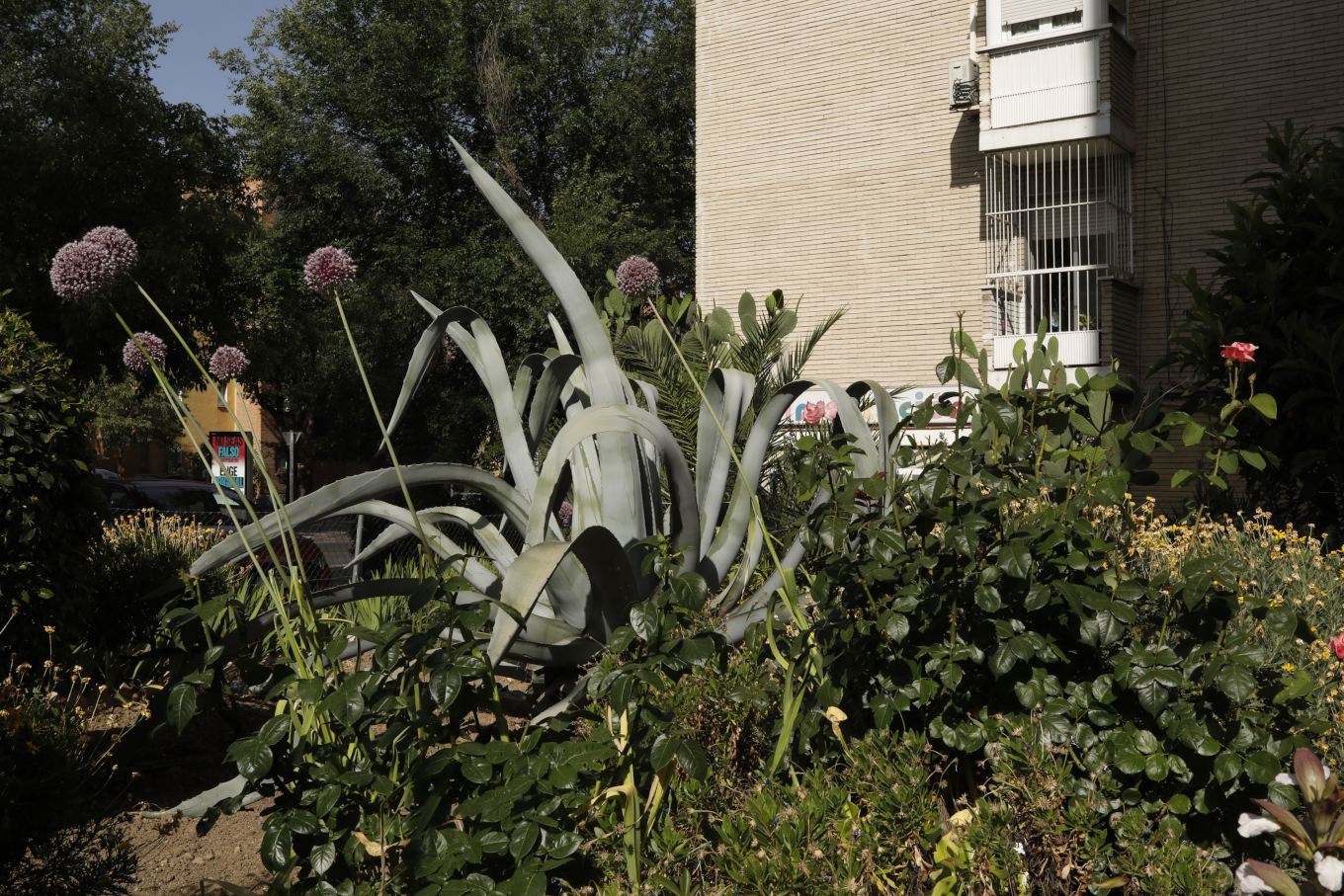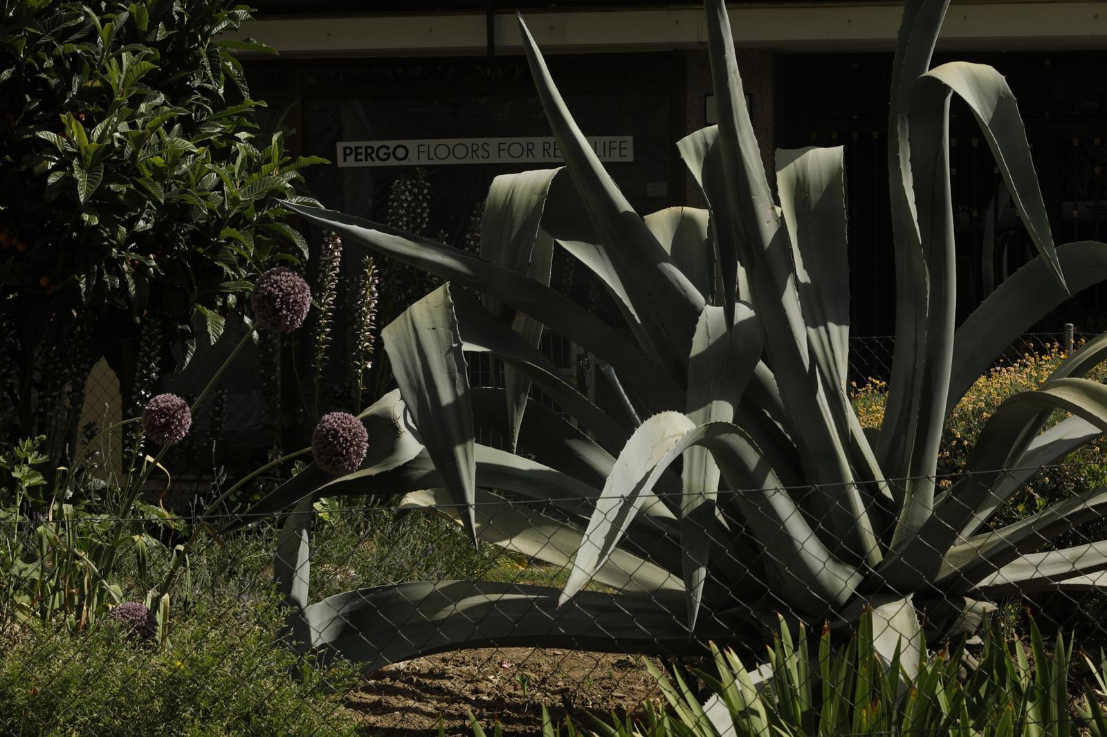 Esa primera vez no conocimos a Victor, vecino y portero del edificio al que pertenece el jardín. Nos quedamos absortos admirando la gran planta de ágave que captaba la mirada del paseante. No hizo falta cocer sus carnosas hojas o las de los demás cáctus esparcidos por el jardín para quedar alucinados por su imponente presencia.