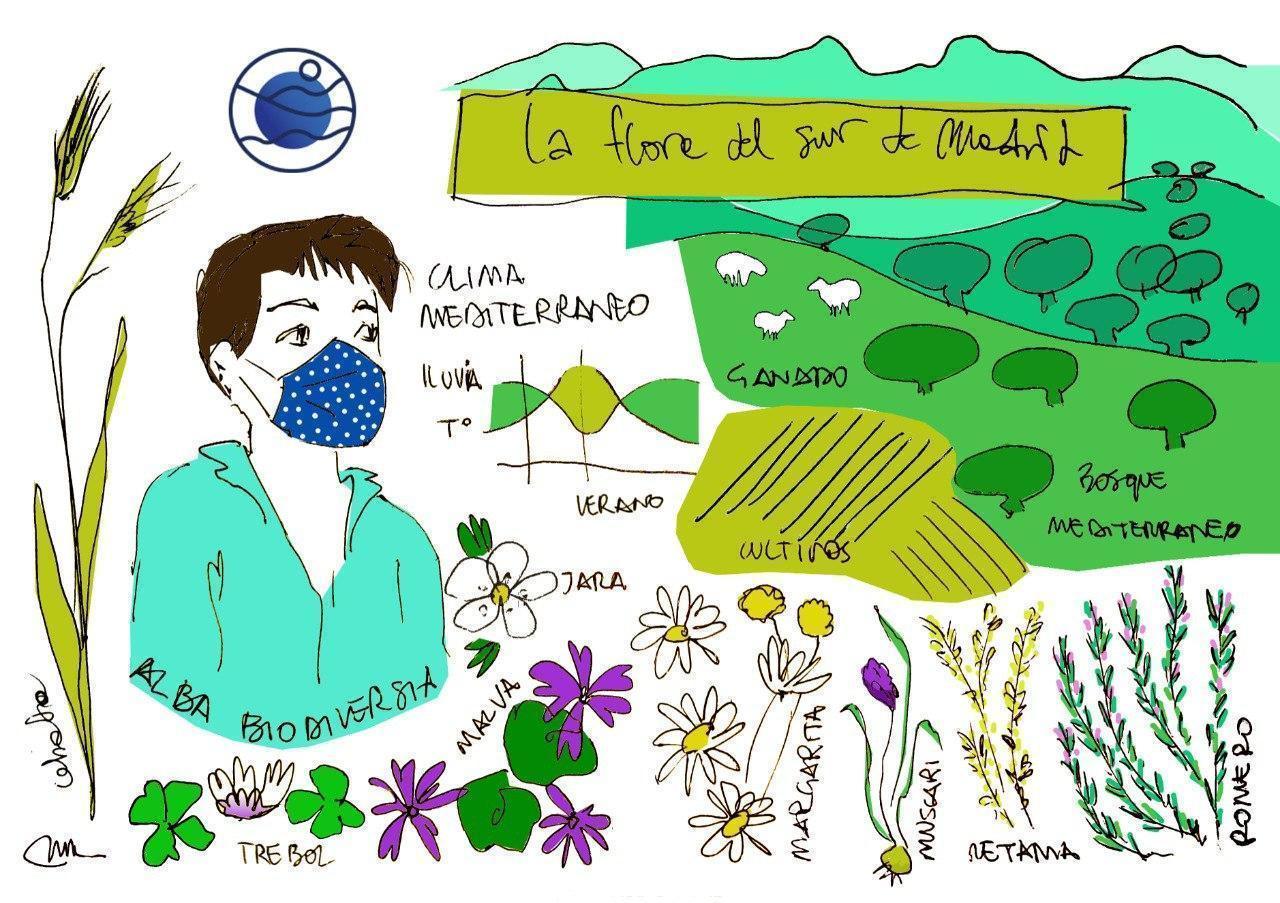Una de las participantes del paseo, Marianna Papapietro, arquitecta y miembro de numerosas iniciativas ciudadanas, como Surcos urbanos o Madrid Agroecológico, e integrante del equipo de dinamizadores del laboratorio, tuvo incluso tiempo de dibujar a Alba durante el paseo ( imagen que da pie a este post)