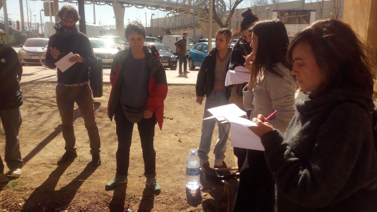 A continuación, tras explicarnos la hoja de ruta, nos dividió en 4 grupos para inventariar los 4 cuadrantes en que delimitó el jardín. Cada cuadrante se dividiría en 4 subcuadrantes de un metro cuadrado. Mrs Alba sacó el metro y dibujo un cuadradro perfecto que posó sobre el terreno. Dentro de ese cuadrado iríamos tomando notas: ph, temperatura, luminosidad, % de cobertura vegetal, altura de las plantas presentes.
