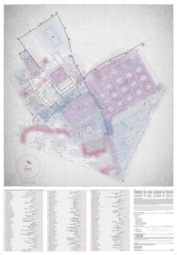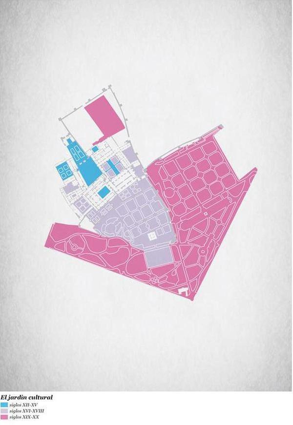 Esta cartografía es, probablemente, la más conocida del Real Alcázar, y la única de las aquí recopiladas que se relaciona más con el espacio que con las especies que lo conforman. Se trata de un mapa que muestra los jardines del Real Alcázar como un conglomerado creado por diferentes culturas a l
