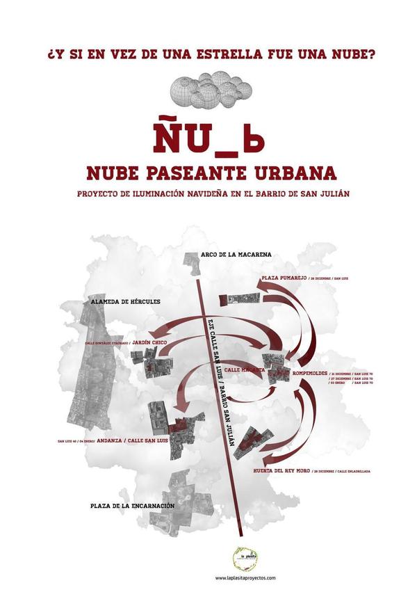 Nos quedan aun reuniones pendientes con colectivos que queremos animar a participar en esta iluminación atípica de barrios. Pero andamos diseñando ya el cartel que anunciará por la zona los movimientos de esta nube paseante urbana. Aquí lo dejamos. A la espera de confirmar algunas fechas y lugare