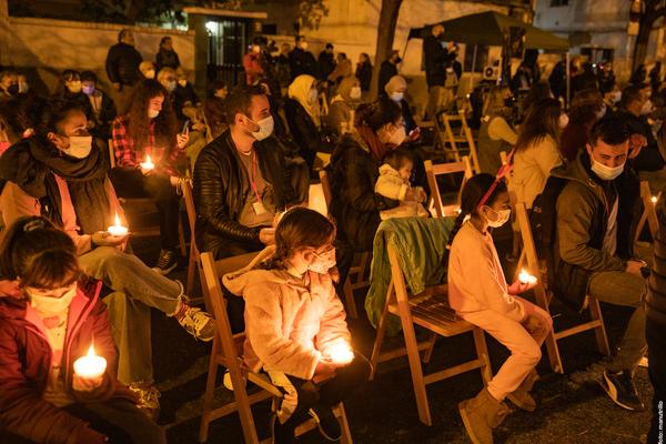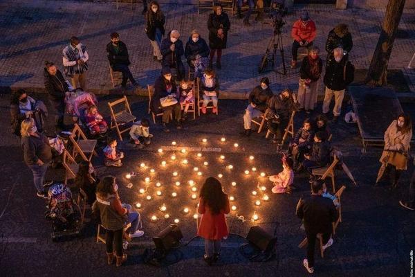 La Ñu_B ayer noche en la comunidad de Rompemoldes conoció a los vecinos. El próximo lunes 21 iluminará el patio.