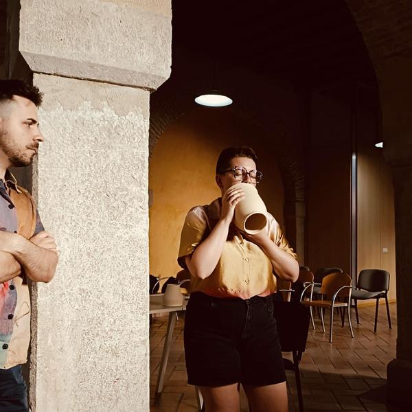 Durante dos días, el Palacio Villapanés se convirtió en un taller sonoro. Las mesas, antes ocupadas por papeles y diagramas, se llenaron de cerámicas, pieles y grabadoras. Las piezas cerámicas creadas para SONE junto a la Escuela de Arte de Jerez (EASDJ) y Gresierra, se convirtieron, en las manos