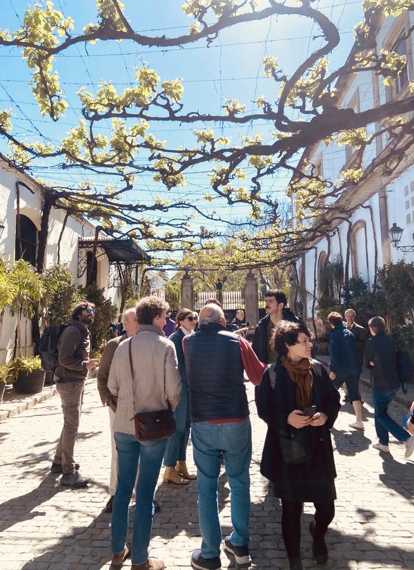 La mañana del 25 de junio condujo al consorcio PALIMPSEST hacia las calles emparradas de las Bodegas González-Byass, donde la sombra vegetal lleva más de setenta años tejiendo microclimas. Una de las formas de datar la fecha se debe a la visita que en 1961 realizó Orson Wells a estas bodegas, don