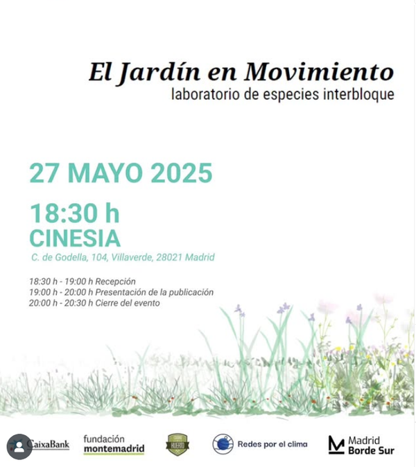 Hoy martes 27 de mayo a las 18:30 en el centro social autogestionado Cinesya será la presentación de la publicación El Jardín en Movimiento: laboratorio de especies interbloque.
